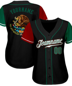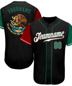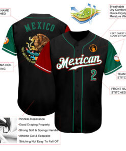 Custom Black Kelly Green-Red Authentic Mexico Two Tone Baseball Jersey