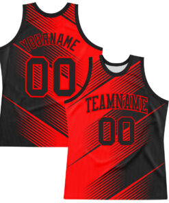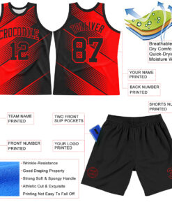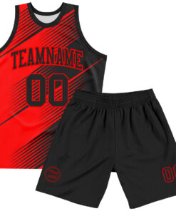 Custom Red Black Line Round Neck Sublimation Basketball Suit Jersey