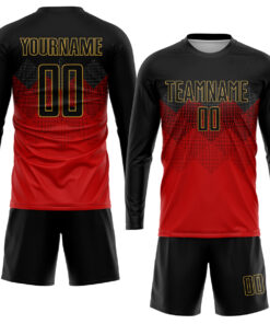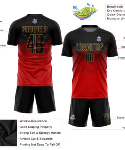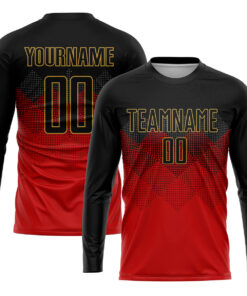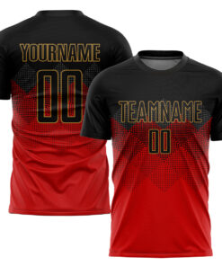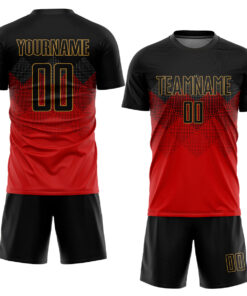Custom Red Black-Old Gold Sublimation Soccer Uniform Jersey