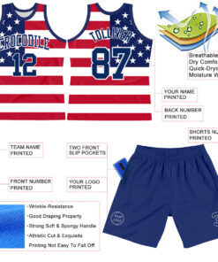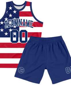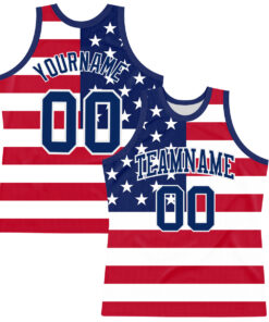 Custom Red Royal-White American Flag Round Neck Sublimation Basketball Suit Jersey