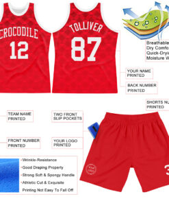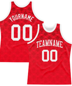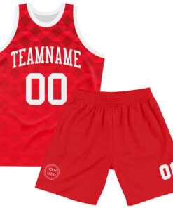 Custom Red White Geometric Shape Round Neck Sublimation Basketball Suit Jersey