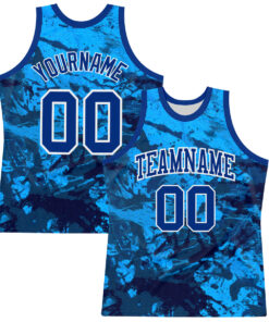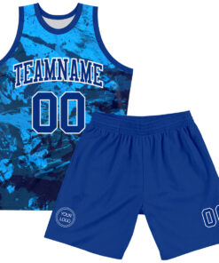 Custom Tie Dye Royal-White Round Neck Sublimation Basketball Suit Jersey